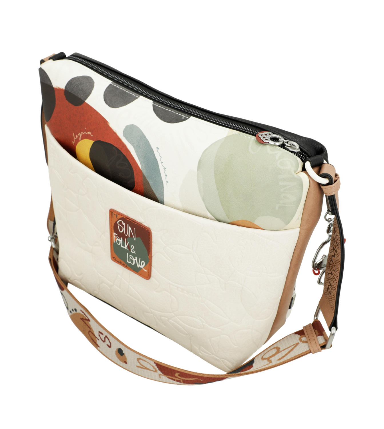 Questo prodotto fa parte della linea Lunares. Questi cerchi originali rappresentano uno dei motivi tipici tradizionali della cultura spagnola, ricreati sotto forma di una griglia artigianale in vimini, su cui si sovrappongono pois più grandi e geometrici. In questa linea troverai formati molto chic con un tocco tradizionale reinventato, attraverso i dettagli presenti su rivetti, trafori e spille. Questa tracolla grande ha tasche sia nella parte anteriore che posteriore. Nella parte interna foderata troviamo alcune tasche. La lunghezza del manico della tracolla è regolabile e si adatta a qualsiasi esigenza. E anche se si dice che l’anima sia qualcosa che non si può vedere né toccare, fare qualcosa "con l’anima" significa farlo con amore, entusiasmo e la tua versione migliore. Allora preparati a ballare con l’anima insieme ad Anekke e scegli subito il tuo nuovo preferito!