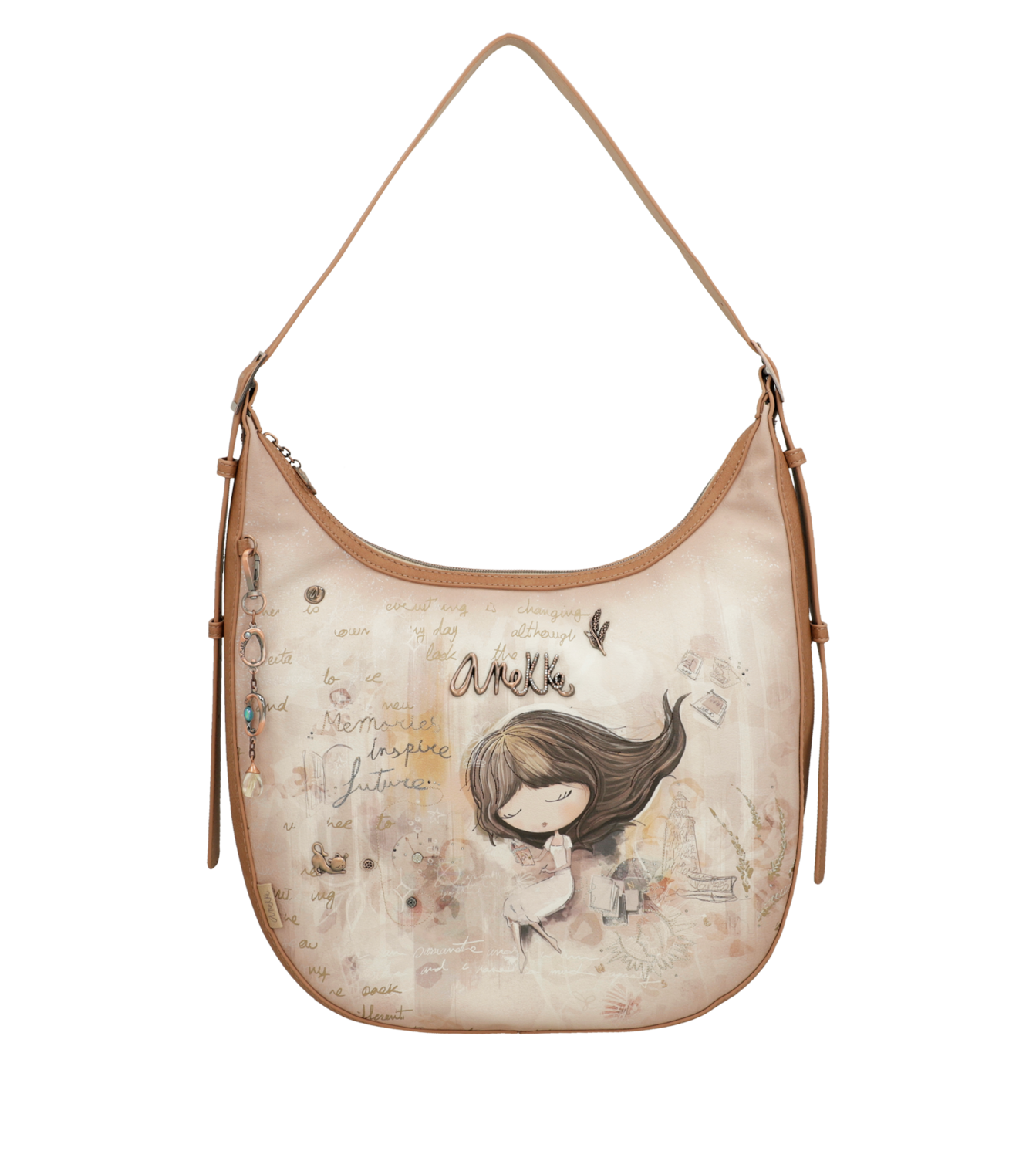 Anekke Memories è una collezione costruita attorno ai ricordi di Anekke. È un viaggio attraverso alcune delle collezioni più iconiche del marchio, rappresentate nella stampa frontale con riferimenti ai loro elementi caratteristici. Un faro di Mediterranean, il sole e le stelle di Universe, la valigia di Travel o i libri di Jane ti porteranno in un viaggio attraverso i ricordi di Anekke. Sei pronta a iniziare questo viaggio nel passato di Anekke? Più guarderai la stampa, più collezioni scoprirai. Inizia qui il tuo viaggio nel passato di Anekke! Borsa a spalla di dimensioni grandi con chiusura con cerniera, interno foderato e tasche, per una massima comodità. Con tasca extra nella parte posteriore. Perché i ricordi ispirano il futuro, preparati a goderteli con Anekke!